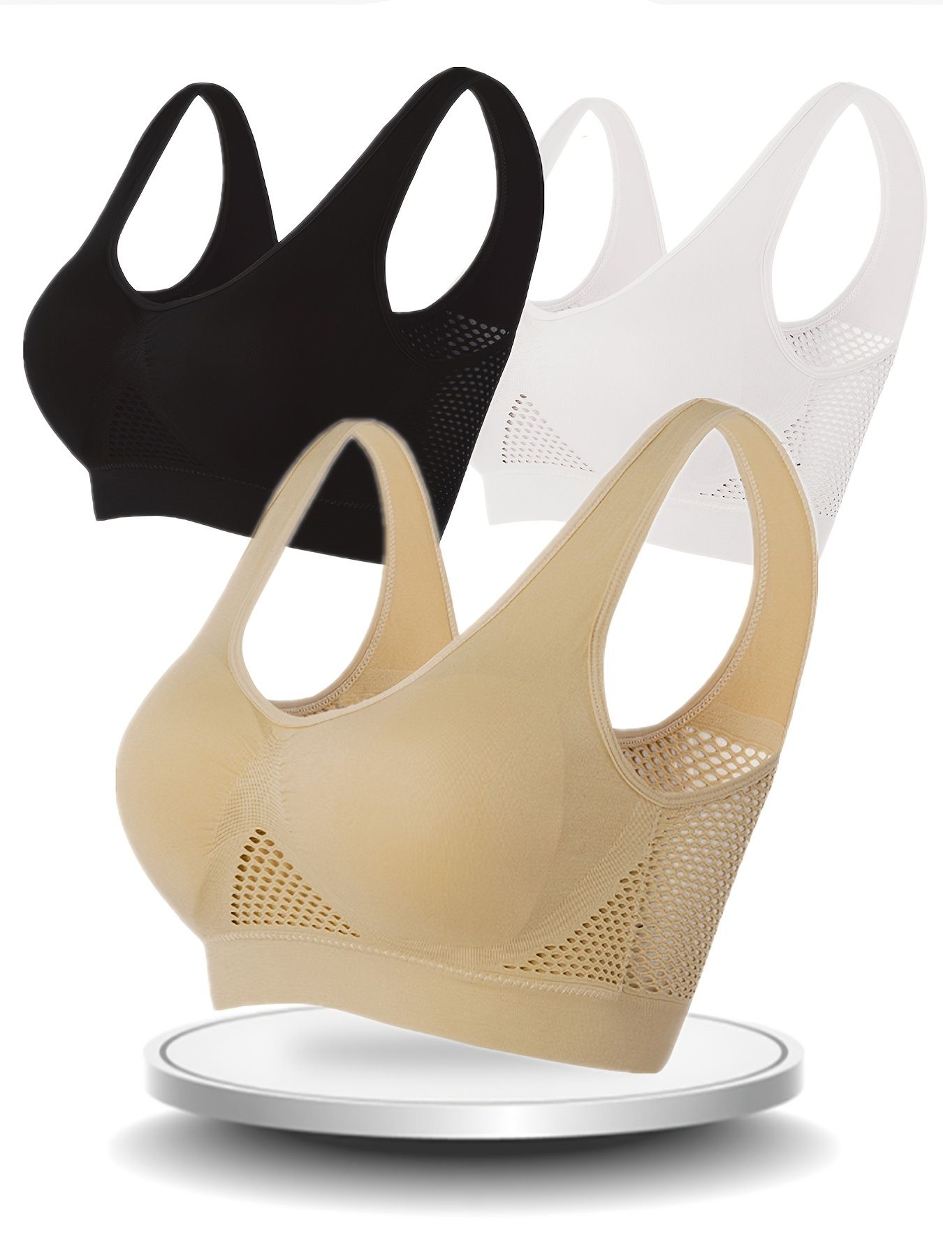 3 Pcs Breathable Solid Eyelet Mesh Hole Vest Sports Bras, Plus Size Non-steel Running Yoga Bras, Women's Lingerie & Underwear 3 Pcs Breathable Solid Eyelet Mesh Hole Vest Sports Bras, Plus Size Non-steel Running Yoga Bras, Women's Lingerie & Underwear 3 Pcs Breathable Solid Eyelet Mesh Hole Vest Sports Bras, Plus Size Non-steel Running Yoga Bras, Women's Lingerie & Underwear