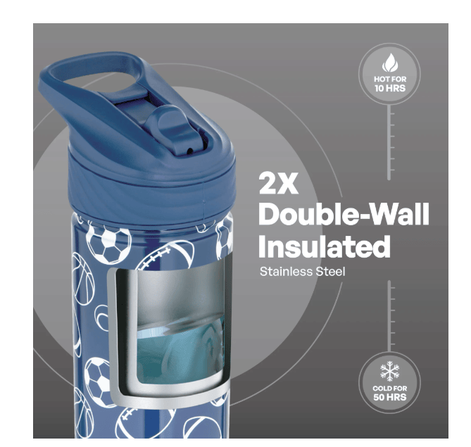 TAL Stainless Steel Ranger Water Bottle with Easy Sip Straw 26 fl oz, Sports Print TAL Stainless Steel Ranger Water Bottle with Easy Sip Straw 26 fl oz, Sports Print